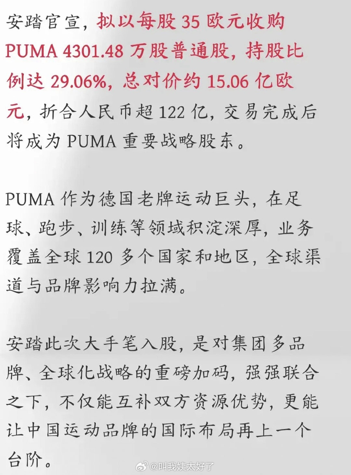 彪马被安踏收购!!安踏帝国堂堂来袭,已经位列世界体育品牌第三了。[傻眼]