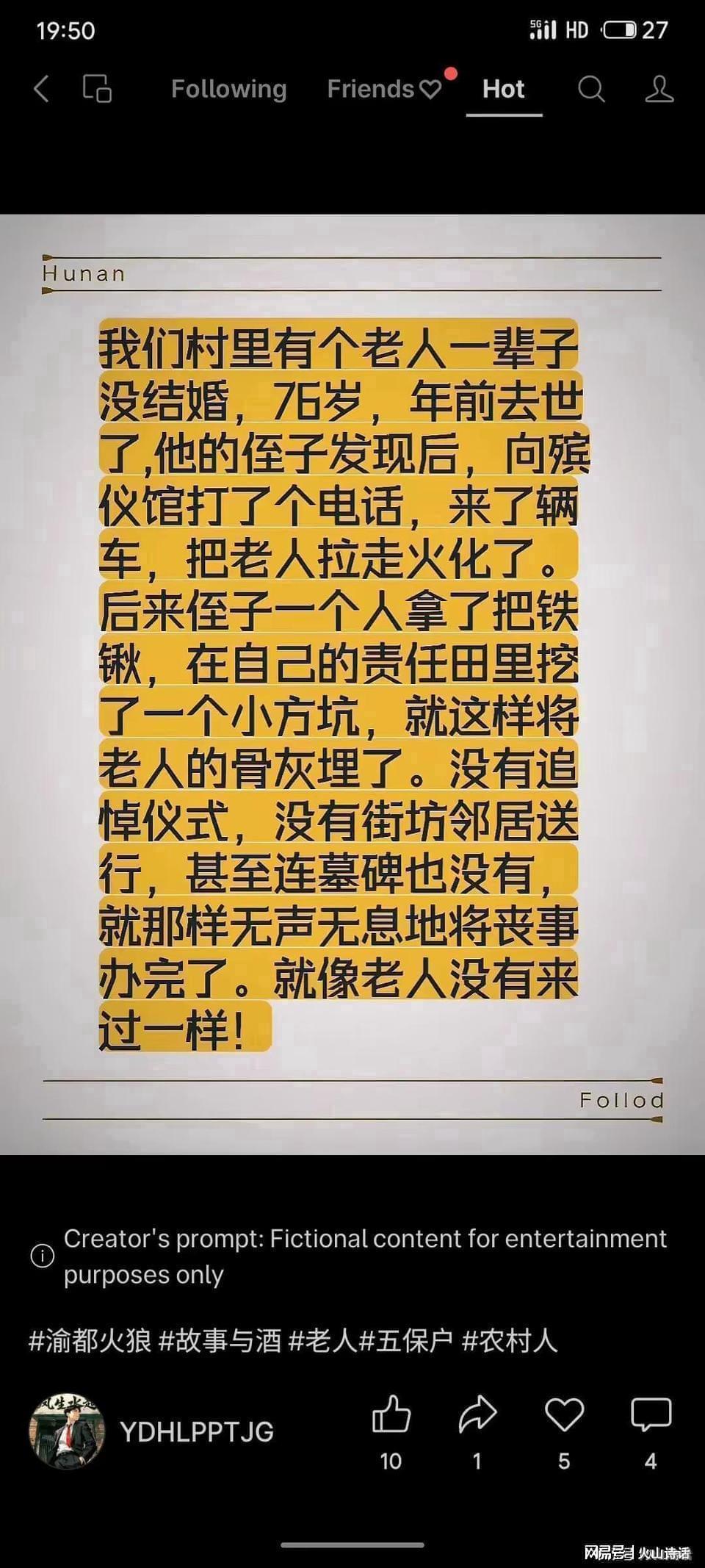 另外,曾有重庆网友也有类似发帖,农村一未婚老人去世后,其侄子仅电话联系殡仪馆火化,随后独自将骨灰埋入自家责任田。无仪式、无送葬、无墓碑,丧事全程悄无声息,终局如老人未曾来过。